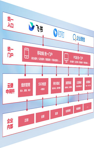 对协作平台提供支持服务,,,支持企业应用与协作平台对接,,包含组织同步、、、、消息集成、、、、待办集成等。。。支持目前主流的协作平台:钉钉、、、企微和飞书。。。